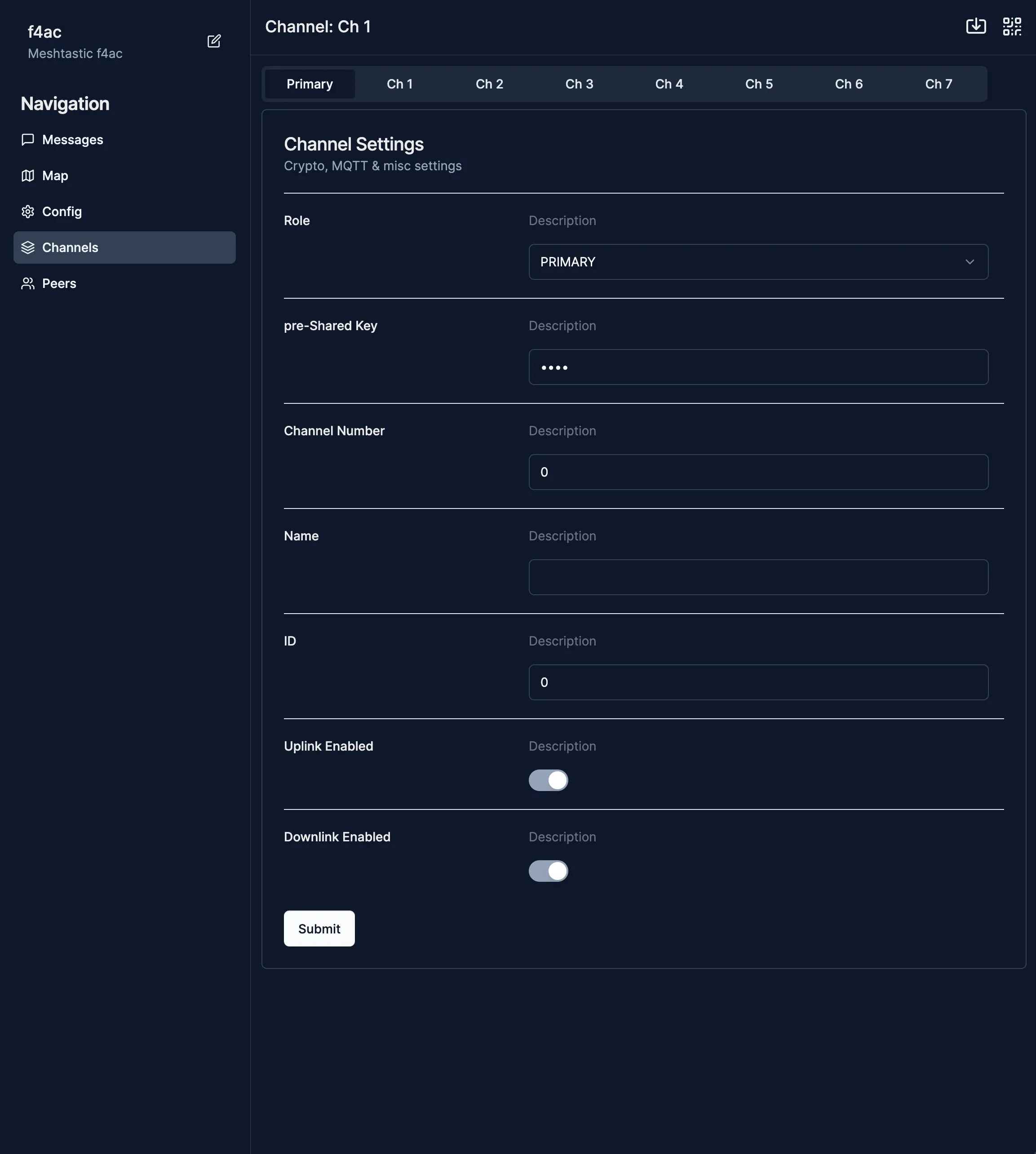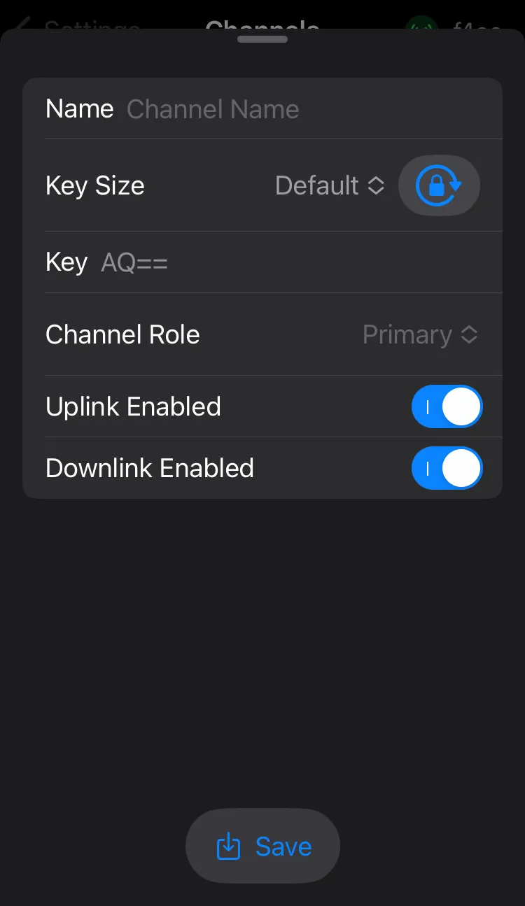 Navigate to Settings > Channels > Primary Channel: Turn on the sliders for Uplink enabled and Downlink enabled - Tap Save