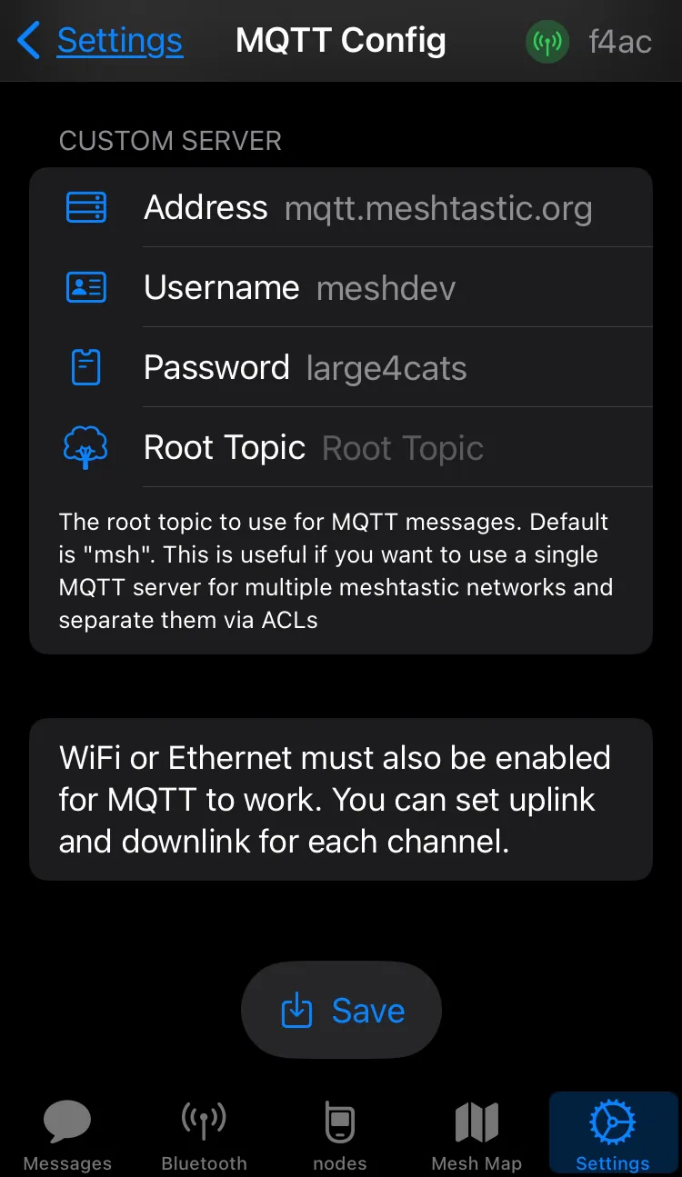 Navigate to Settings > MQTT: Turn on the slider for MQTT enabled and tap Save