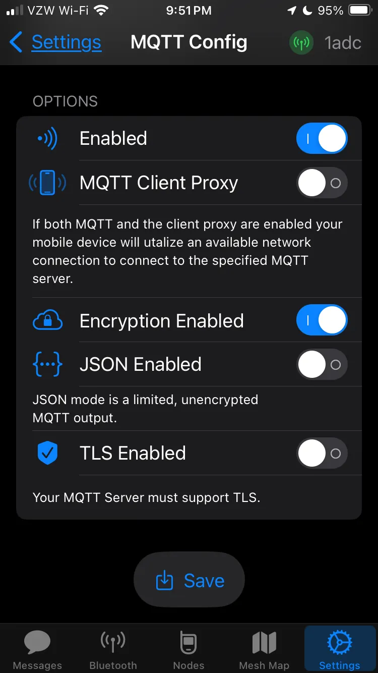 Navigate to Settings > MQTT: Turn on the slider for MQTT enabled and tap Save