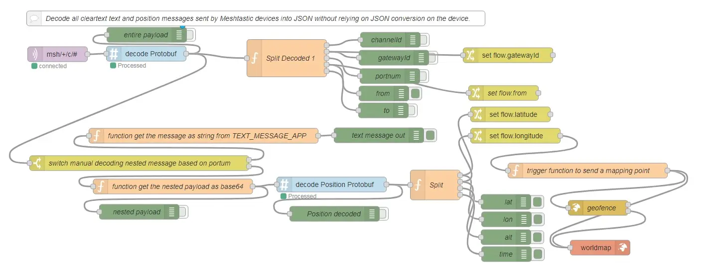 3. Using protobuf-encoded messages with a protobuf decode node and the Meshtastic protobuf definitions