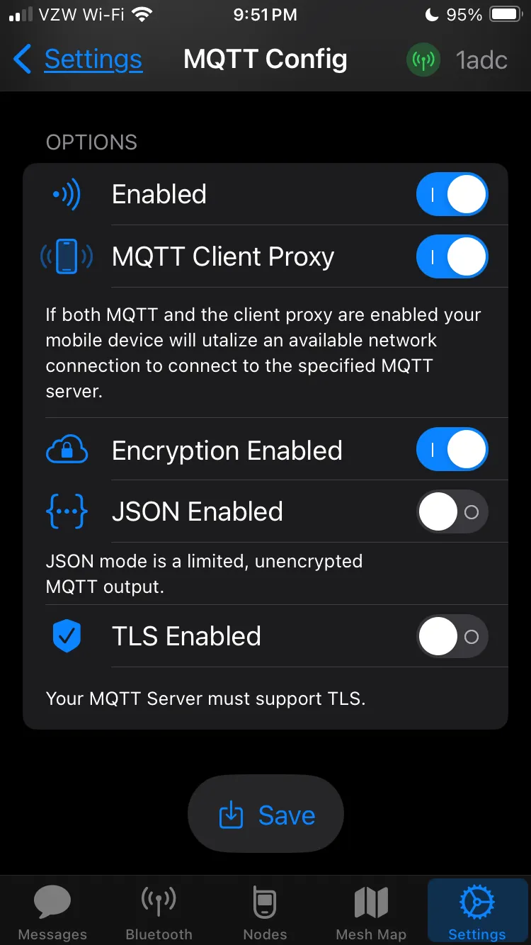 Navigate to Settings > MQTT: Turn on the slider for MQTT enabled and tap Save